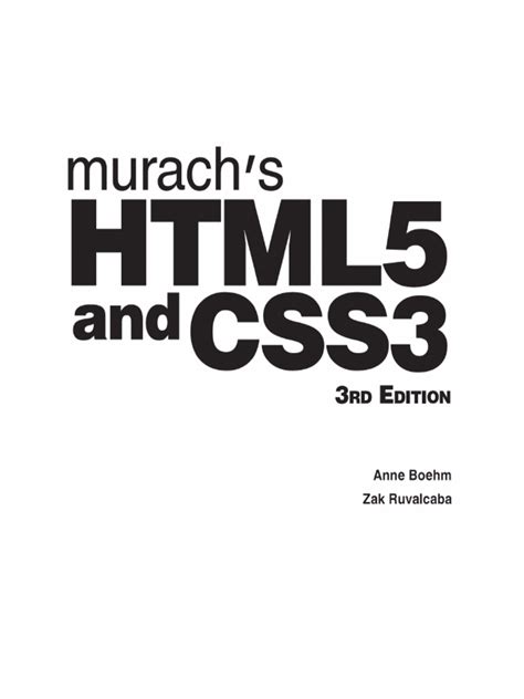 Read murachs html5 and css3 PDF online is a convenient and frugal way to read murachs html5 and css3 you love right from the comfort of your own home. Yes, there sites where you can get PDF "for free" but the ones listed below are clean from viruses and completely legal to use.